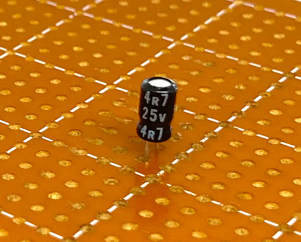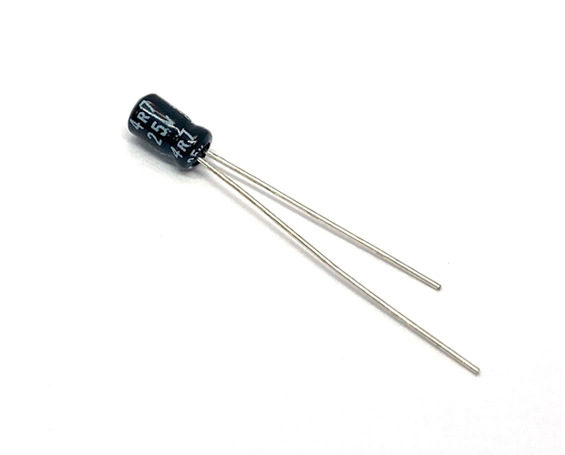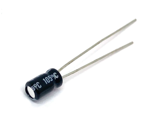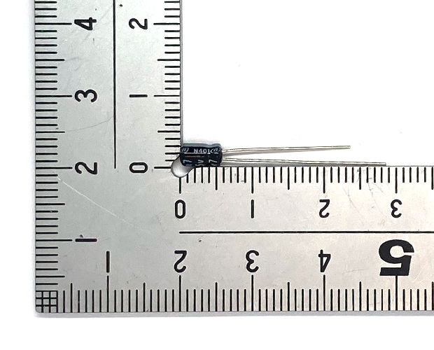 ニチコンの105℃品小型アルミ電解コンデンサです。25V 4.7μF。