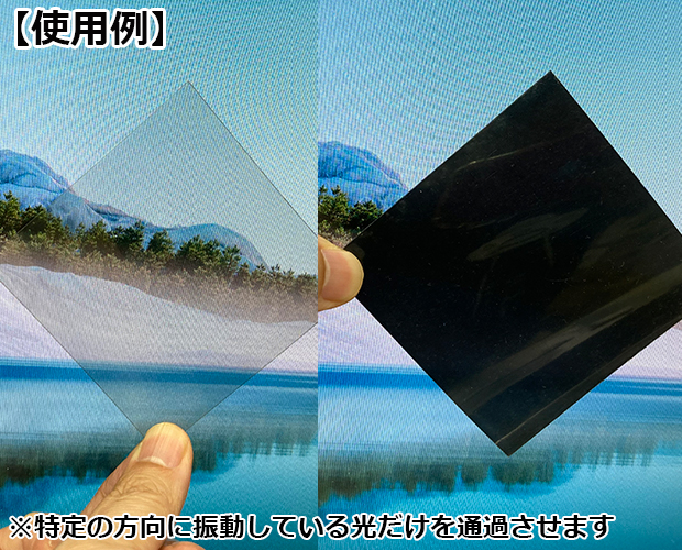 ・偏光の各種実験に使用できるプラスチック製の偏光板です。