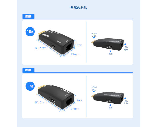 ・延長距離:最大50m(CAT6ケーブル使用時)