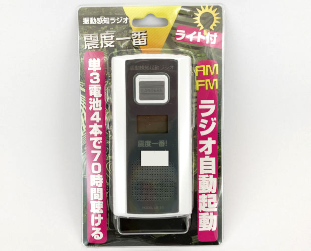 揺れを感知して自動的に起動する防災ラジオです。防犯にも使えそう。