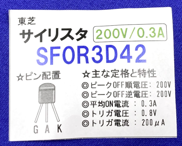 品名/型番 : | 小電力サイリスタ 200V 0.3A (50個入) ■限定特価品■ / SF0R3D42-50P |