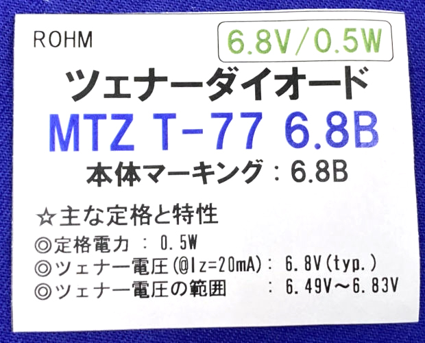品名/型番 : | ツェナーダイオード 500mW 6.8V (100個入) ■限定特価品■ / MTZ T-77 6.8B-100P |