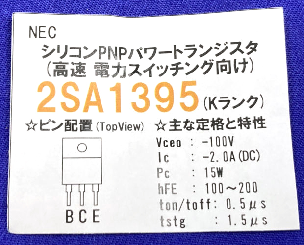 品名/型番 : | NEC PNPパワートランジスタ -100V -2A 15W (20個入) ■限定特価品■ / 2SA1395-K-20P |