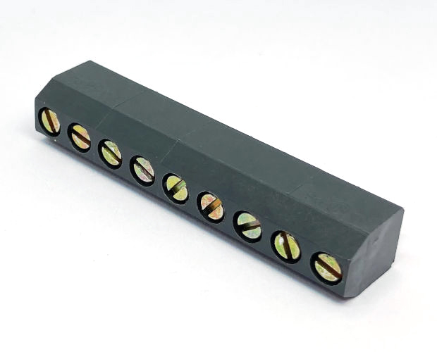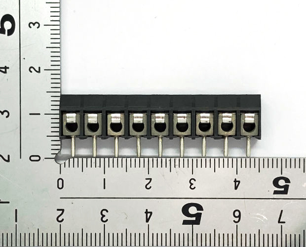 WECOのプリント基板実装用端子台ネジタイプです。端子間ピッチ5.08mm。9ピンタイプ。