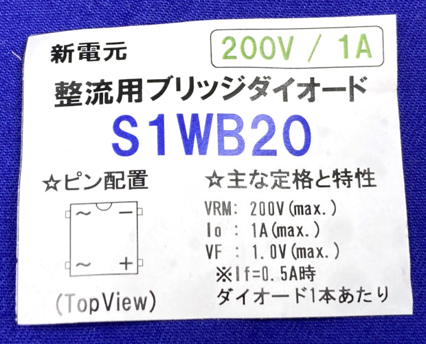 品名/型番 : | 新電元工業 表面実装用ブリッジダイオード 200V 1A (50個入) ■限定特価品■ / S1WB20-50P |