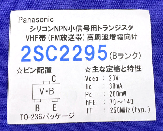 品名/型番 : | 高周波用NPNチップトランジスタ 20V 30mA 200mW 250MHz (100個入) ■限定特価品■ / 2SC2295-B-100P |