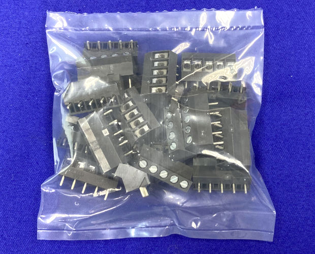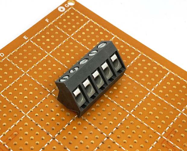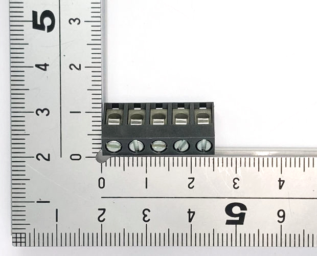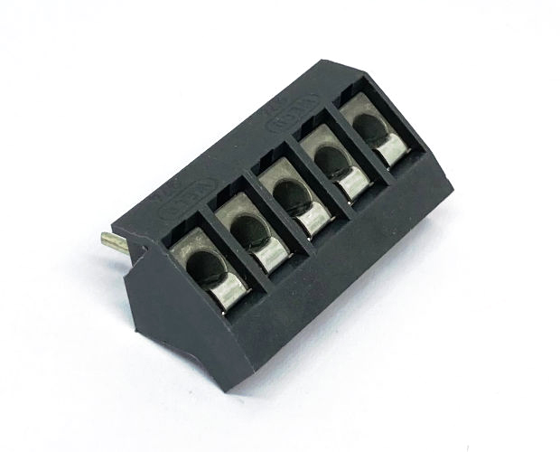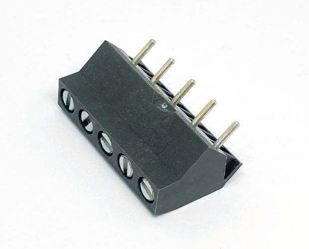 基板に対して45度の角度で電線を接続する端子台です。端子ピッチ5mm。5ピンタイプ。