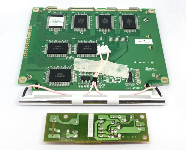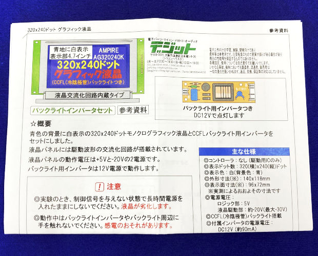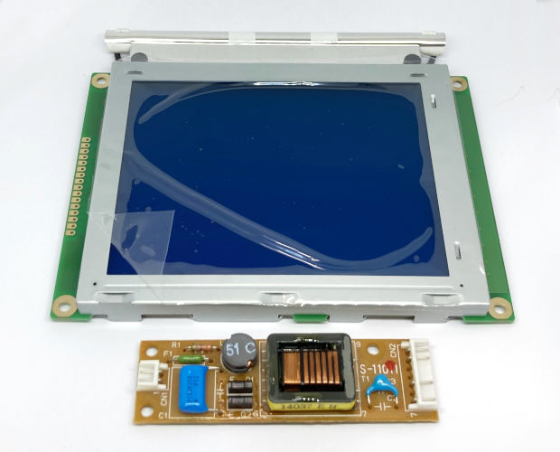 ●青色の背景に白表示の320×240ドットモノクログラフィック液晶とCCFLバックライト用インバータをセットにしました。