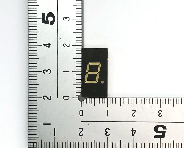 上下の余白が特徴的な赤色1桁7セグメントLED(アノードコモン)です。