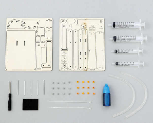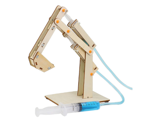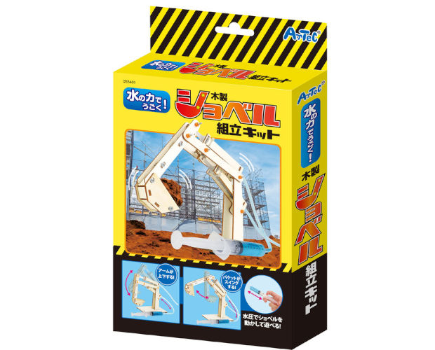 「水の力でうごく!ショベル組立キット」は、水の圧力を使って動くショベルを組み立てる理科工作キットです。
