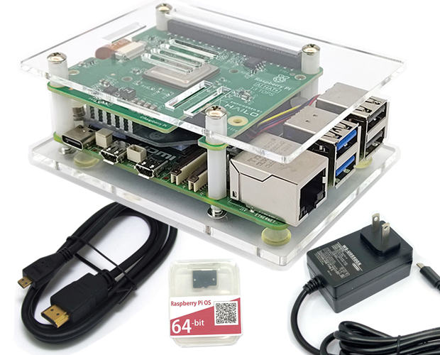 Raspberry Pi OSインストール済みSDカードと、電源・HDMIケーブルもセットで入門者でも簡単にスタート可能